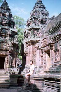 タ・プロームでは遣跡の中で迷子になり、これまた銃を持った兵士に道案内をされ出口までいきました。この頃は遺跡に銃を持った兵士がごろごろしていたものです。理由を聞くとタ・プロームは危ないからガードしているといわれました。いくらガードしているとはいえ近くに銃を持った人がたむろっているとそれだけでちよっぴりこわかったです。でもしっかり中で昼寝をしている私って・・・お気楽。