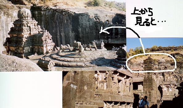 岩を上から削り取って作ったと言われる「カイラーサナータ」はとても美しく、所々に色が残っていた。できた当初のイメージは想像できないほどきれいだったに違いない。1時間ほどぶらぶらした。また、がけに登って上から見てみたがこれも絶景。